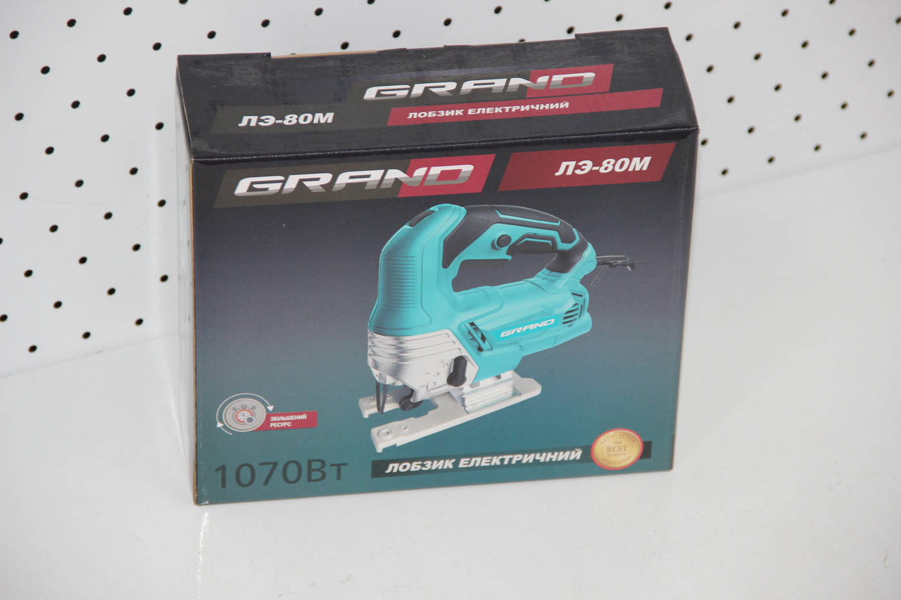 Grand ЛЭ-80M на 1070 Вт. Это универсальное оборудование, созданное для выполнения прямого либо криволинейного распила поверхностей. Изделие справляется с древесиной, металлами и прочими материалами.