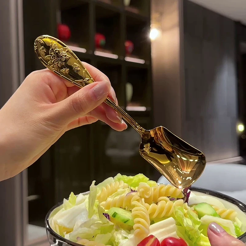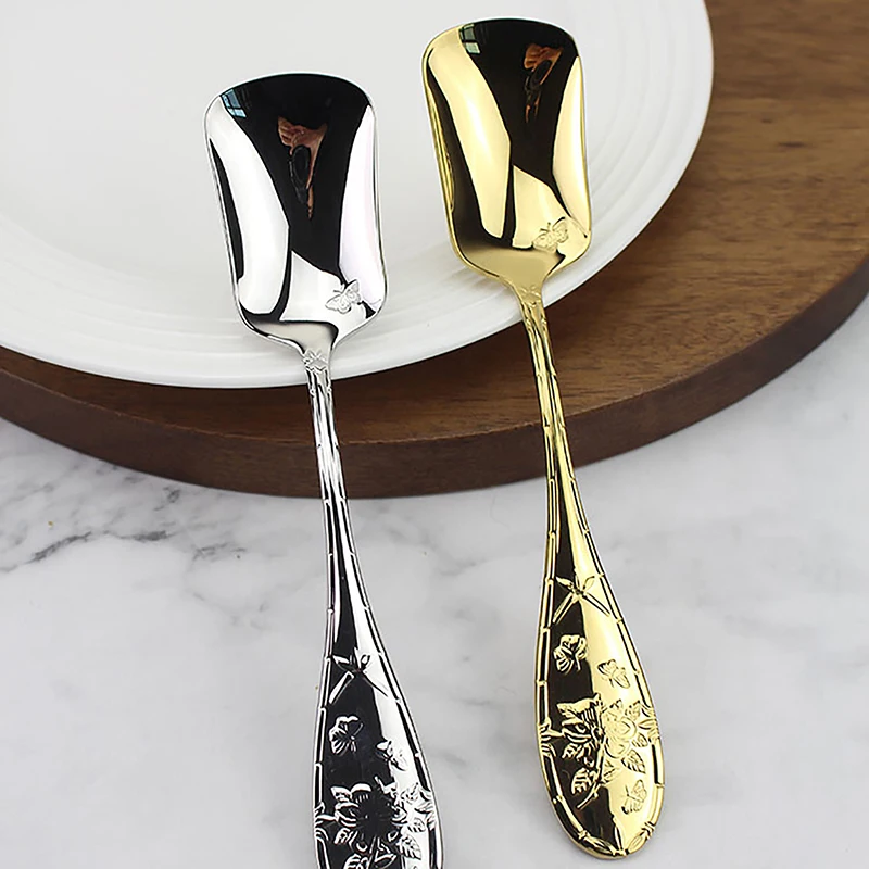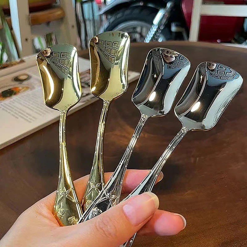 Ложка квадратная из нержавеющей стали, ложка для перемешивания, с длинной ручкой, для мороженого и десерта, 17 см