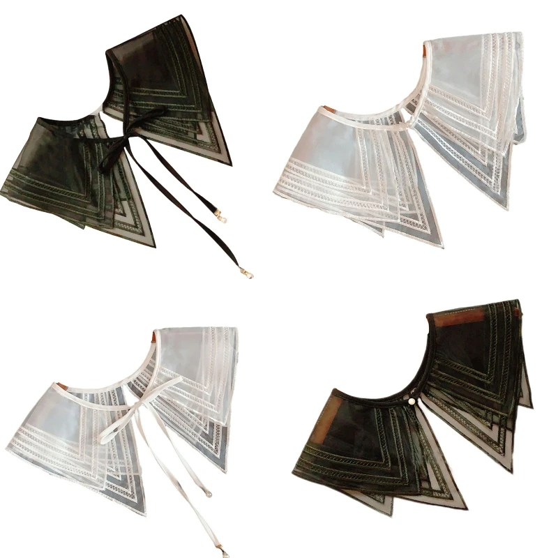 Ложный воротник в винтажном стиле Ханфу, воротник с вышивкой, вырез, прозрачный тюль N58F