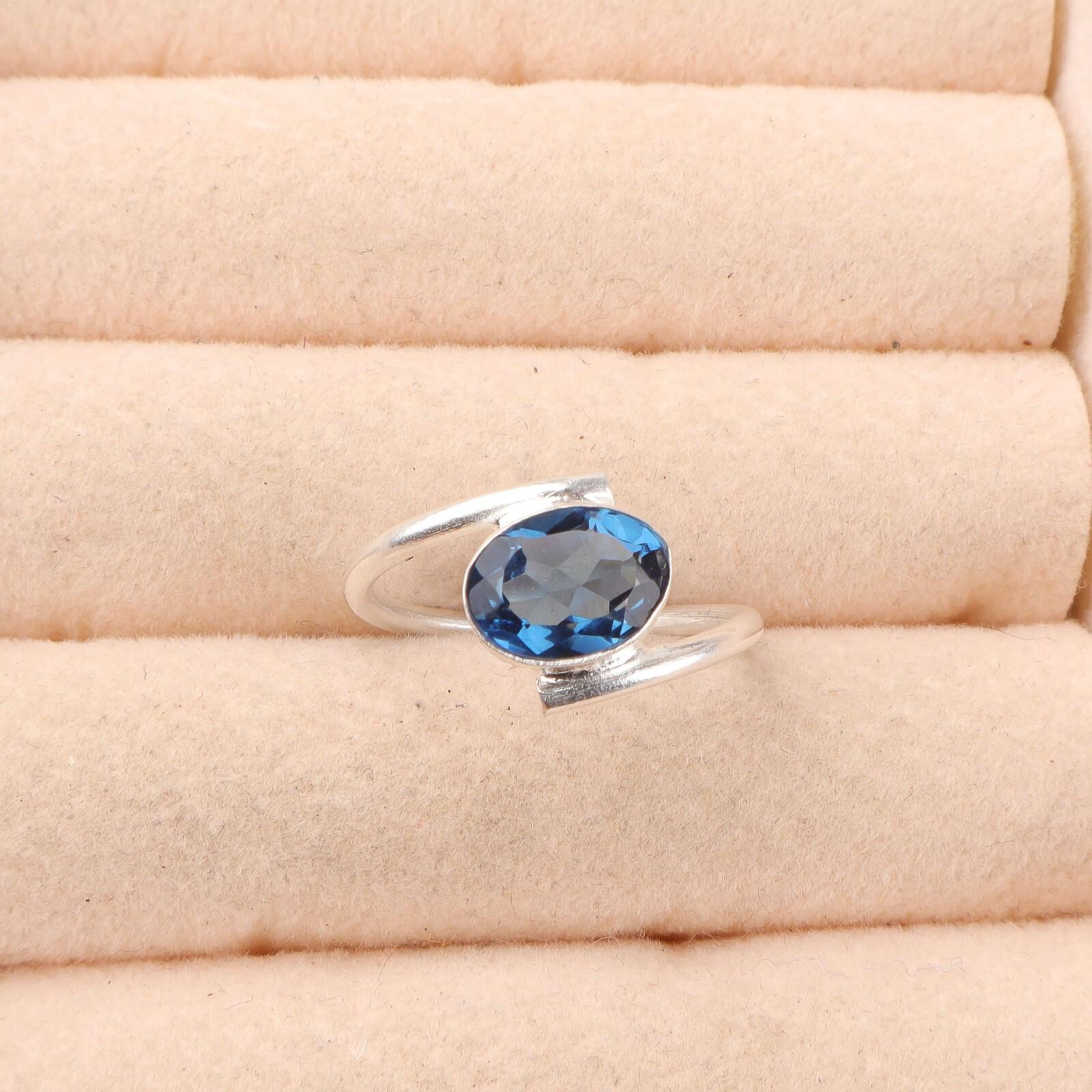 Лондонский голубой топаз Драгоценный камень 925 Стерлинговое серебро Ювелирные изделия Ручной работы Обручальное кольцо RR-31-8 10.5