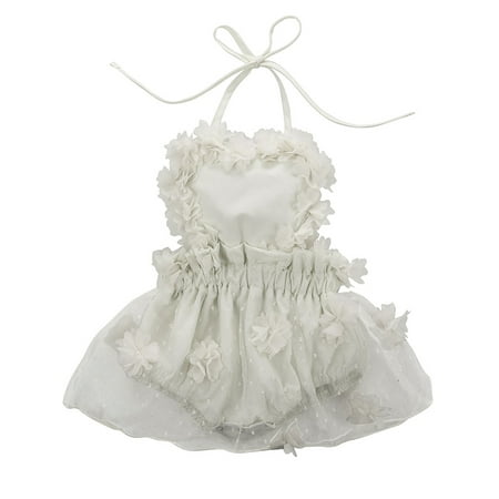 Infant Baby Girls Summer Romper Halter Flowers Hollow Back Jumpsuit Multi-Layer Ruffle TuTu Romper