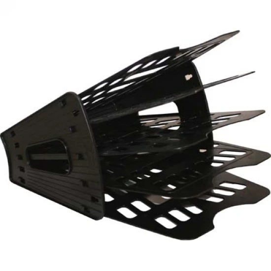 Лоток для бумаг веерный СТАММ 4 отделения, пластиковый, черный (ЛТ91)