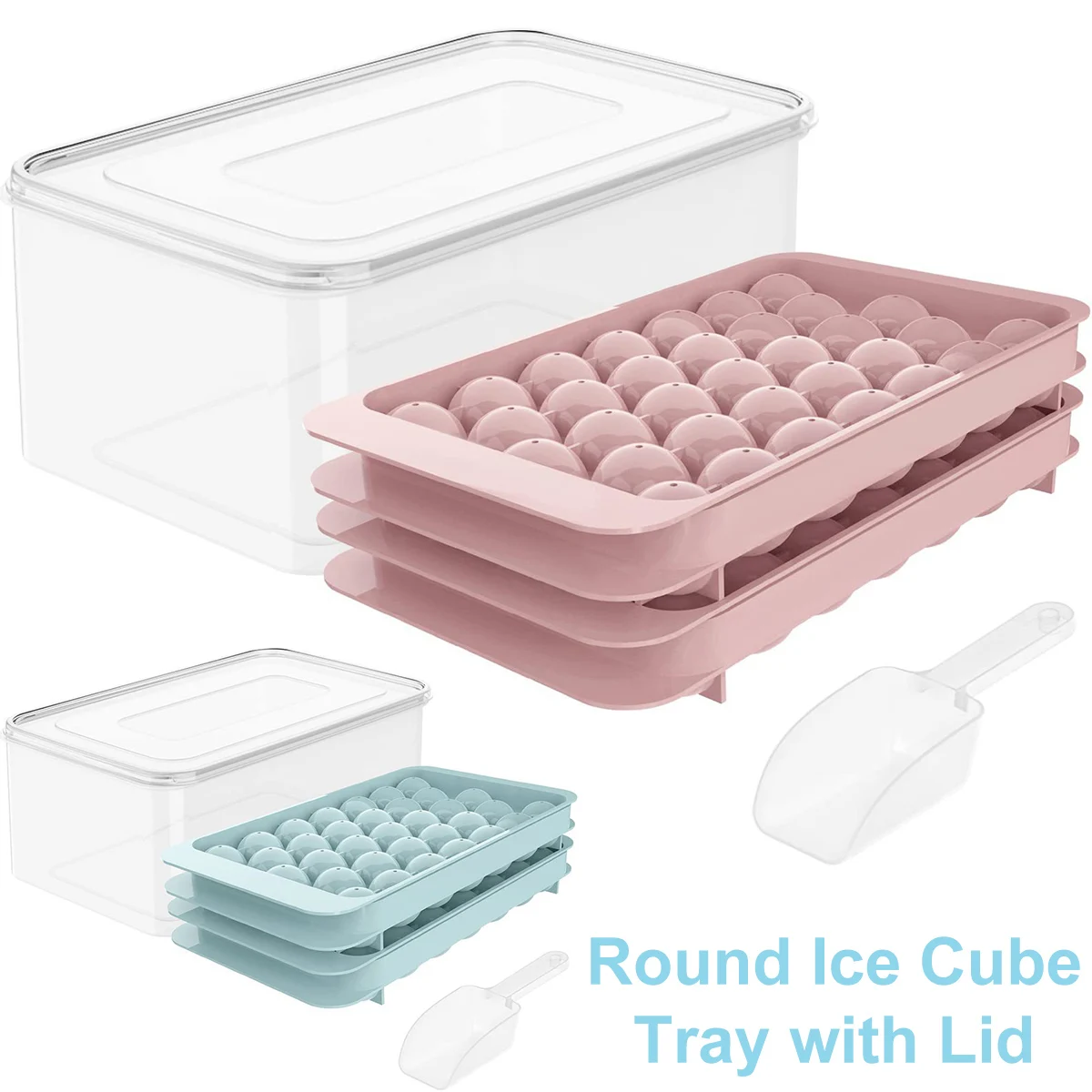 Лоток для льда с ложкой, 2-х слойный легко снимающийся лоток для льда, форма для шариков с ящиком для хранения, Штабелируемый контейнер для льда, посудомоечная машина