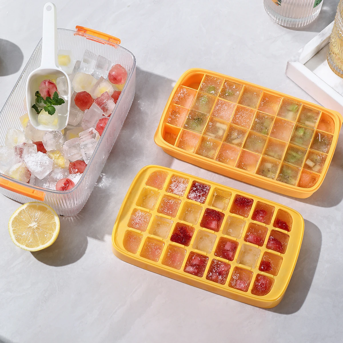 Лоток для льда, 28 ячеек, силиконовые формы для льда, ящик для хранения, быстросъемный квадратный льдогенератор «сделай сам», аксессуары для ...