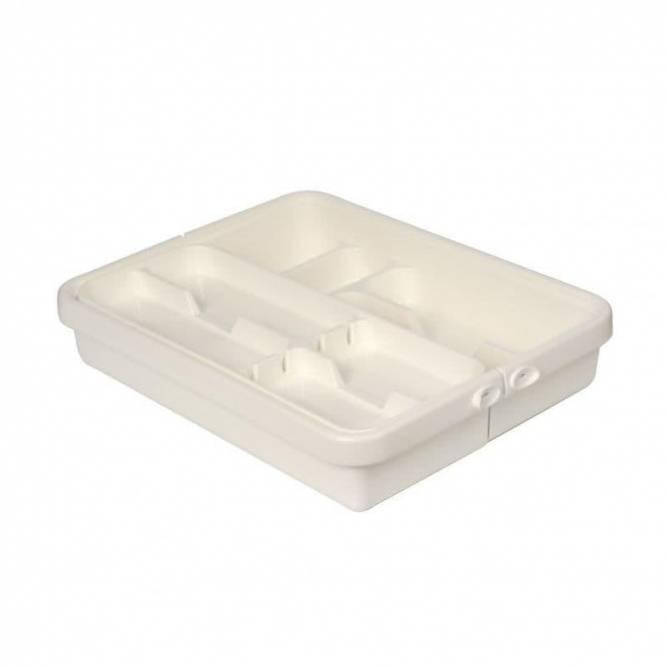 Такой лоток просто необходим на любой кухне. Он не занимает много места. Очень удобные полочки, которые выдвигаются делают его очень практичным по применению. Несмотря на свою компактность, лоток вмещяет очень много столовых приборов. Можно хранить ложки, вилки, ножы, открывашки, штопоры, лопатки и прочее в одном месте. Раздвижной лоток подойдет к кухонным ящикам размером от 32 см до 55 см. Изготовлен из качественного пластика, не имеет запаха. Легко ухаживать, можно мыть в посудомоечной машинке.