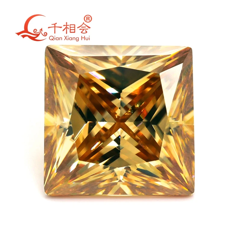 Yellow color Square shape princess cut moissanite loose gmes stone by qianxianghui