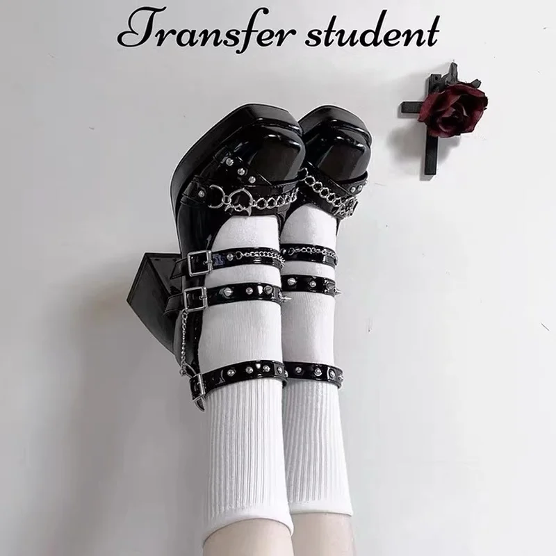 Лоферы в стиле «лолита» для косплея, мягкие Лоферы Мэри Джейн, с блестками, металлическое украшение, в стиле панк, готика, весна-осень 2022
