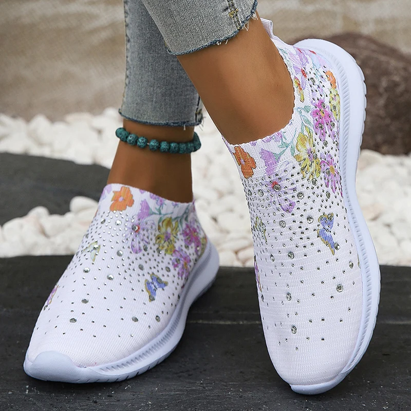 Лоферы женские вязаные на плоской подошве, с цветочным принтом, большие размеры