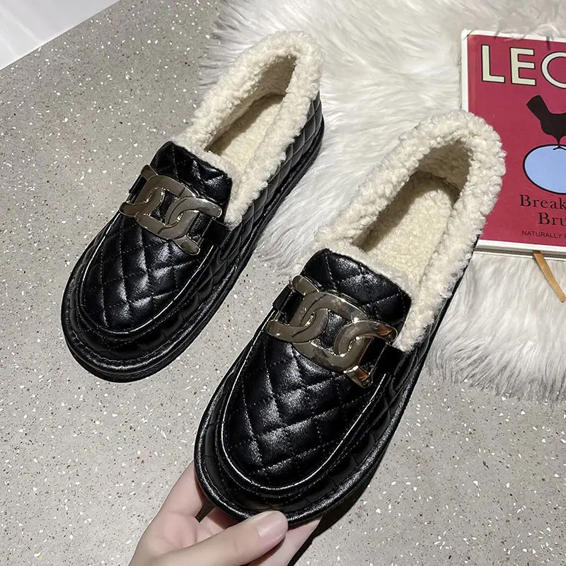 Лоферы на плоской подошве, теплые плюшевые зимние фонарики, весенние кроссовки, новинка 2022, женская обувь для бега с цветами, Женская прогул...