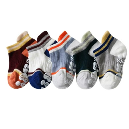 5 Pairs Toddler Baby Multicolor Striped Anti-Slip Low Cut Boat Socks with Grips