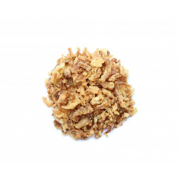Лук жареный резаный - это популярная и очень вкусная специя. Готовится путем обжаривания в масле нарезанного сушеного репчатого лука. Пряность не имеет неприятного вкуса или запаха. Лук на вкус напоминает чипсы со вкусом лука. Хрустящая жареная приправа широко используется в кулинарии стран Европы, Азии, США.Лук используют при производстве полуфабрикатов, различных паштетов, колбас. Пряность входит в состав многих продуктов быстрого приготовления: супов, каш, картофельного пюре, замороженных продуктов, соусов и кетчупов. Востребован жареный лук для фастфуда: хот догов, бургеров, лапши, азиатских блюд и прочее. Используют жареный лук в изготовлении многих хлебобулочных изделий: хлеба, булочек, пампушек.Жареный лук не так полезен как свежий, но имеет в своем составе ряд витаминов и микроэлементов, которые сохраняются даже после жарки. Полезные свойства жареного лука Обеспечивает хорошее функционирование нервной системы благодаря витамину В.Никотиновая кислота в составе отвечает за нормализацию обменных процессов.Фолиевая кислота - оптимизирует работу иммунной системы, а так же поддерживает в норме функционирование сердечно-сосудистой системы.Пряность приводит в норму жировой обмен и способствует снижению веса.В составе есть биотин который отвечает за укрепление ногтей, волос и кожи.Повышают иммунитет организма.Оказывает положительное влияние на мочеполовую систему и стимулирует работу почек.Снижает количество вредного холестерина в крови. Вредные свойства жареного лука С осторожностью рекомендуют употреблять продукт детям, людям с хроническими болезнями печени, людям с болезнями сердца и артериального давления, людям с астмой.