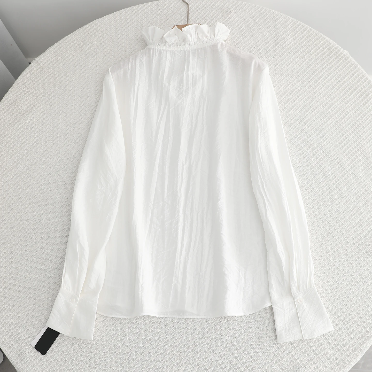 Ele Casual Long Sve irt Wooden Commute Sle Faionable Универсальное тонкое дышащее волокно из полиэстера для женщин irt