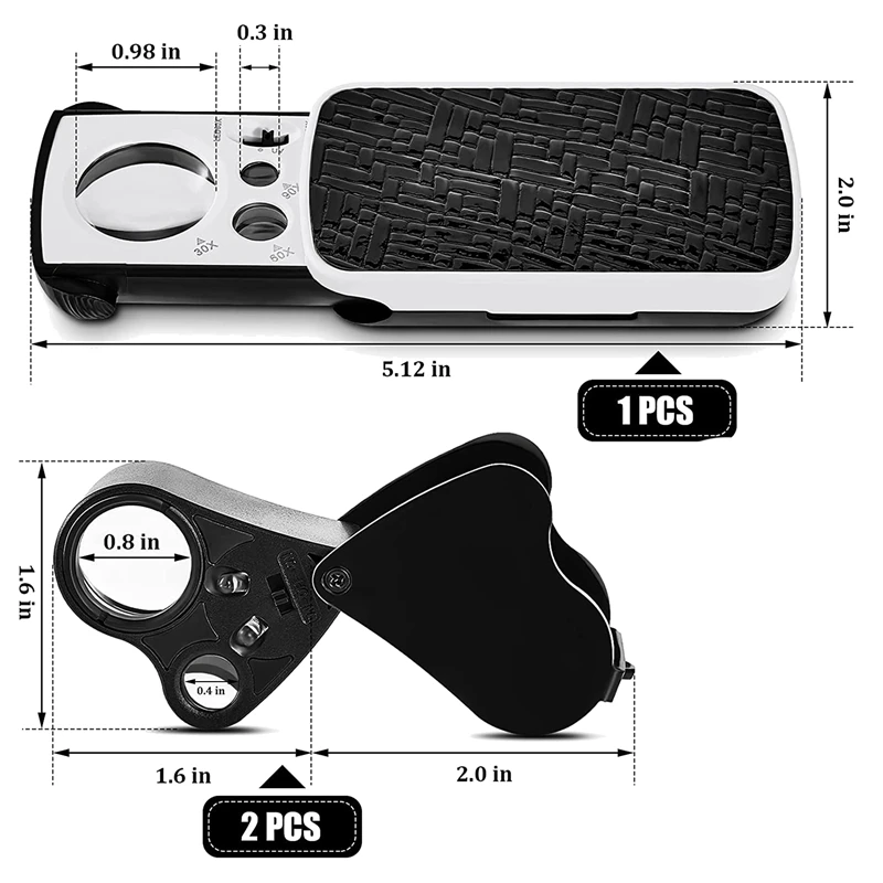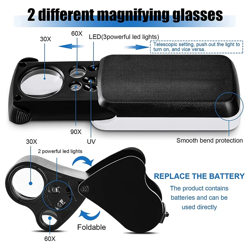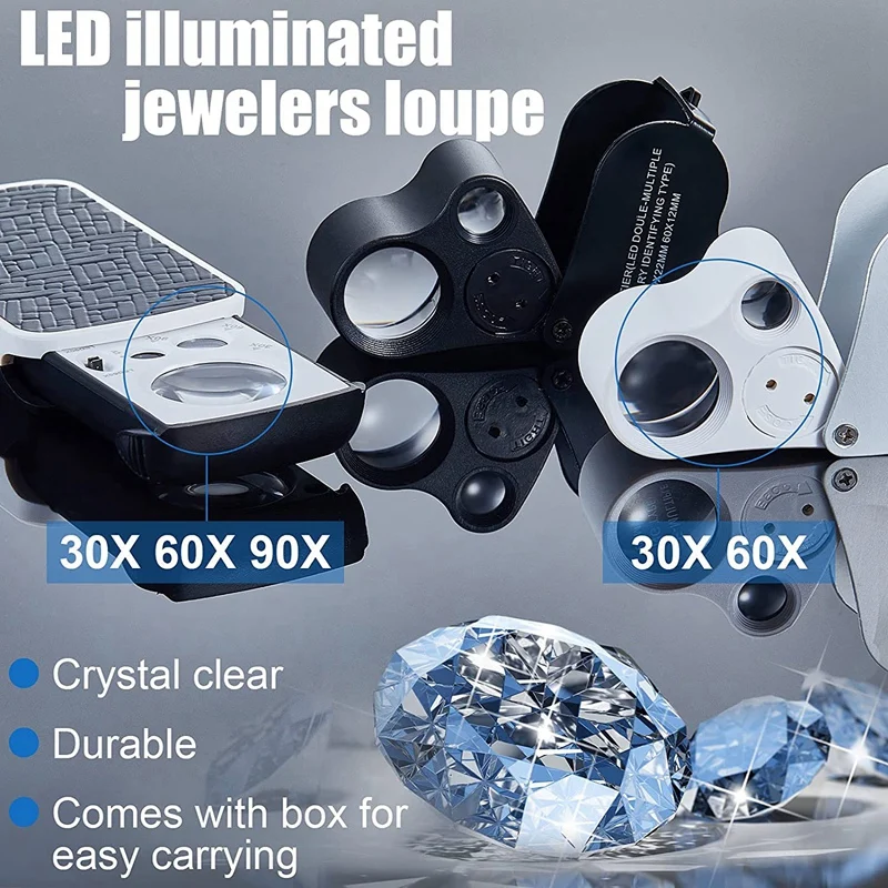 Лупа для ювелирных изделий, увеличительное стекло с петлей, яркая светодиодная лампа, 3 шт., 30X 60X 90X