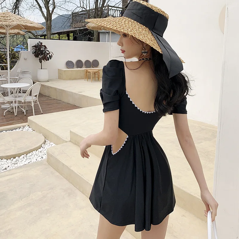 Women's Summer Casual A-Line Sleeve Print Short Sleeve V-Neck Shoulder Ruffle Dress Ladies Slash Neck Mini Dresses Sundress