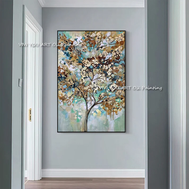 Лучший художник Золотая фольга Дерево Ручная роспись тени без рамки простая масляная живопись на холсте коридор лучшие большие настенные х...