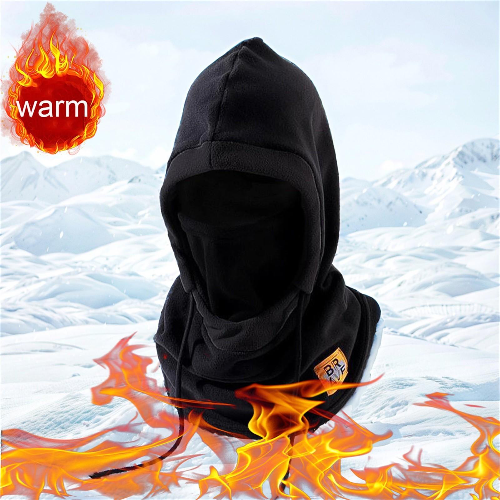 Лыжная маска для мужчин и женщин, зимняя теплая ветрозащитная маска для лица, флисовый капюшон, полный головной убор, шарф, утеплитель для шеи One Size чёрный