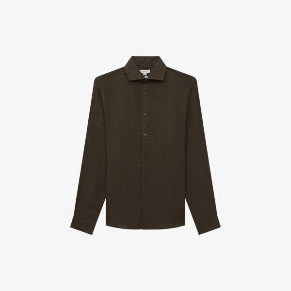 Льняная рубашка Ruban классического кроя Reiss, цвет bitter chocolat