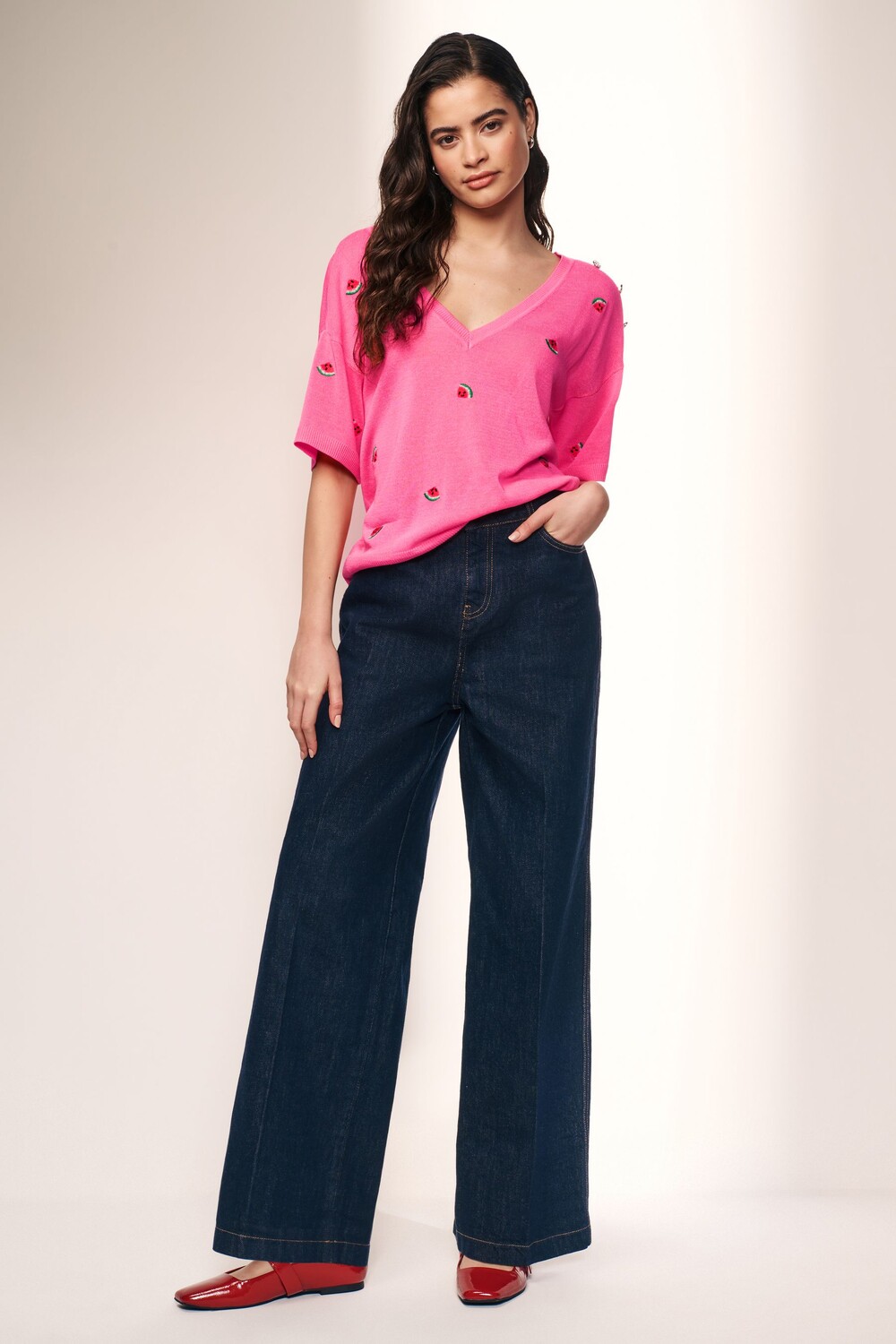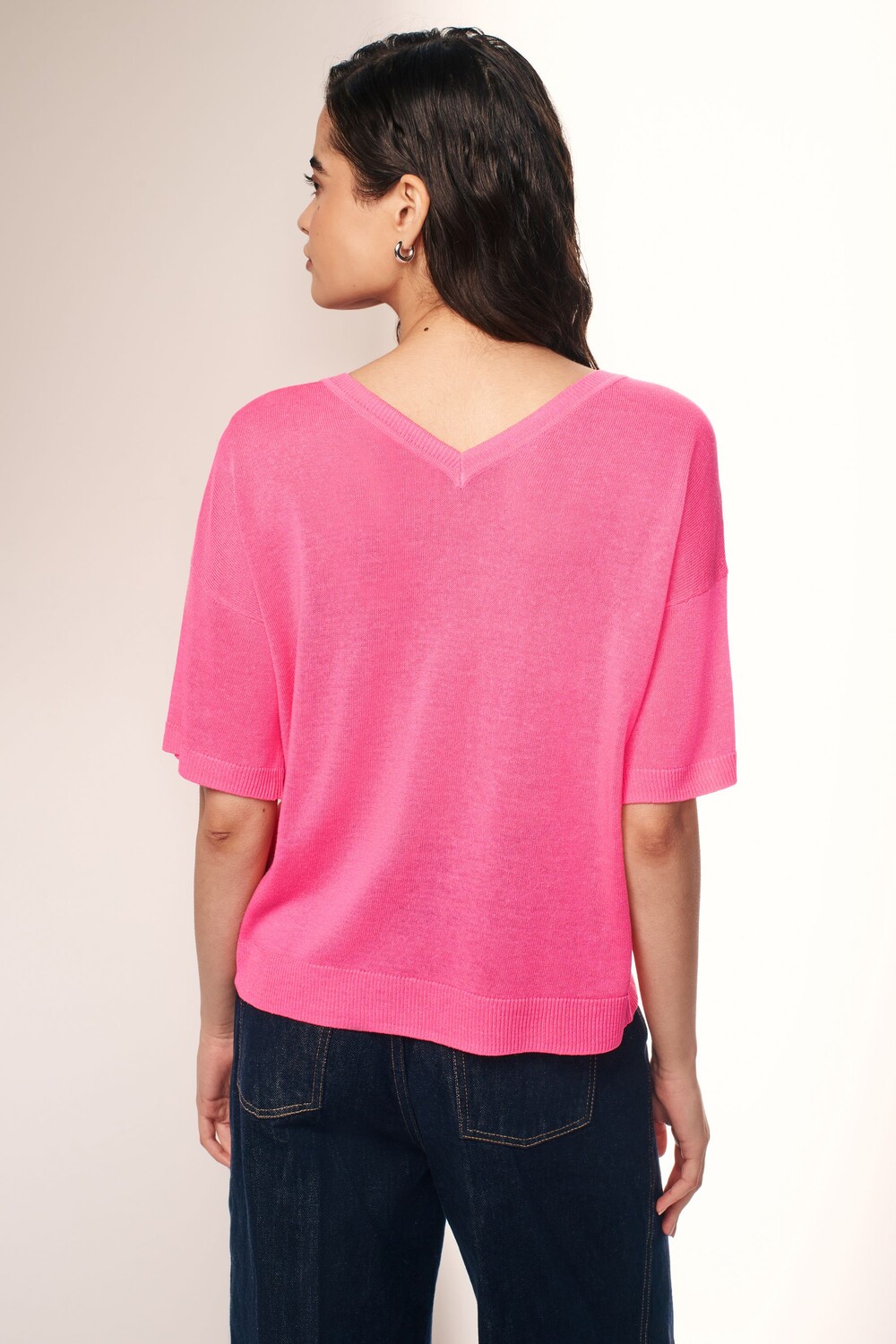 Льняная футболка с V-образным вырезом и декоративными пуговицами Next, розовый