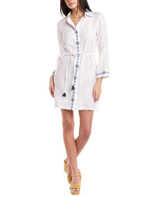 Льняное платье-рубашка с вышивкой Pomegranate Jewel, женское синее, Синий