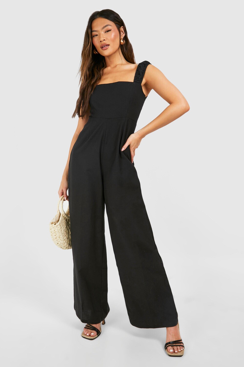Льняной комбинезон с широкими штанинами boohoo, черный