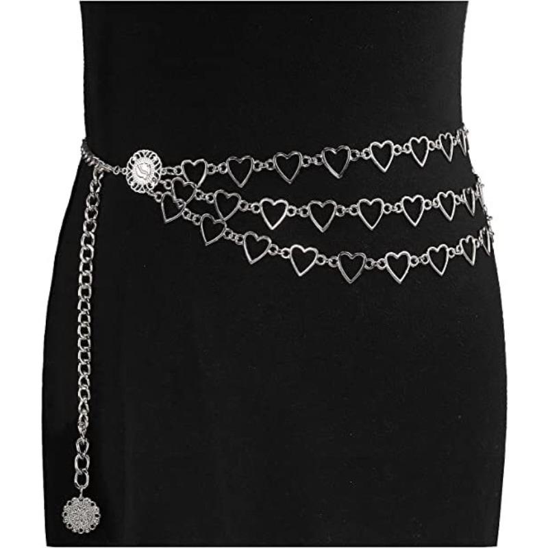 Любовь Поясная цепочка Женская Многослойная Полая Персиковое сердце Универсальное Платье Декоративный Красота Головной ремень Love waist chain, silver.