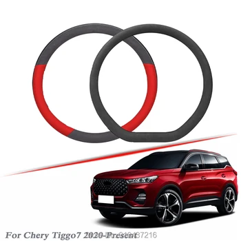 Car Steering Wheel Cover Black Red Drilled Suede Breathable Leather Universal Fit for Chery Tiggo 7 2020