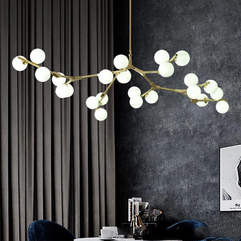 Люстра в виде ветвей дерева, стеклянные шарики, люстры, молекулярное украшение для гостиной, подвесные осветительные приборы для столовой и...