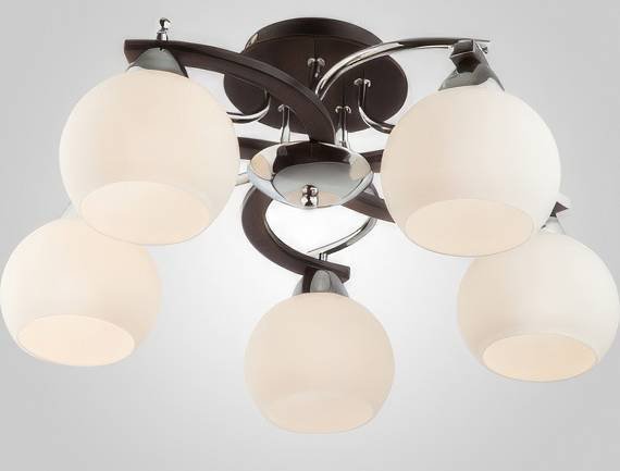 люстра средней высоты, плафон белый/матовый (стекло), каркас коричневый/хром