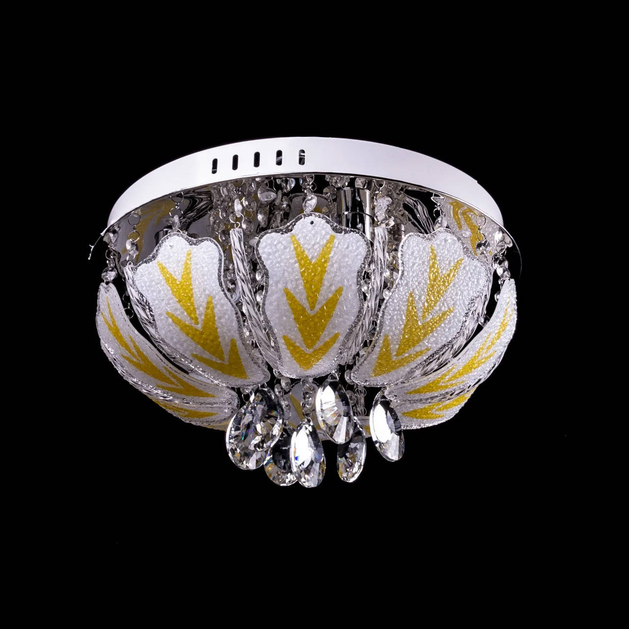 Люстра "торт" на 4 лампочки, со встроенной светодиодной подсветкой (синий, фиолетовый, красный) на пульте управления, цвет основания белый с хромом. Все декоративные элементы изготовлены из стекла, что несомненно придаст роскоши интерьеру, а керамические патроны позволяют устанавливать любой тип лампы, от накаливания до светодиодных.
