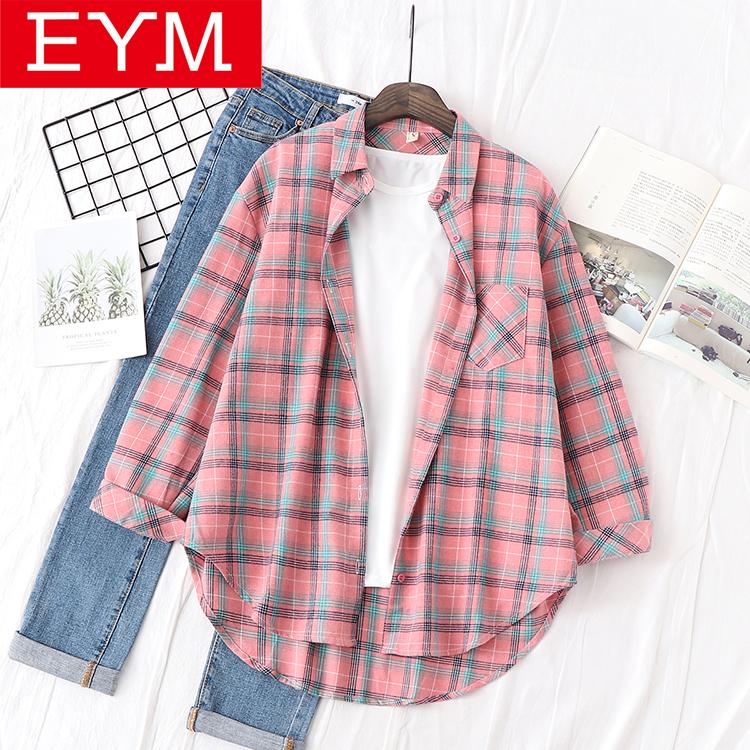 Shirts 2022 New Cotton Plaid Shirts Women Casual Loose Tops And Blouses Ladies Long Sleeve Large Size One Pocket Blouse Blusas, 04