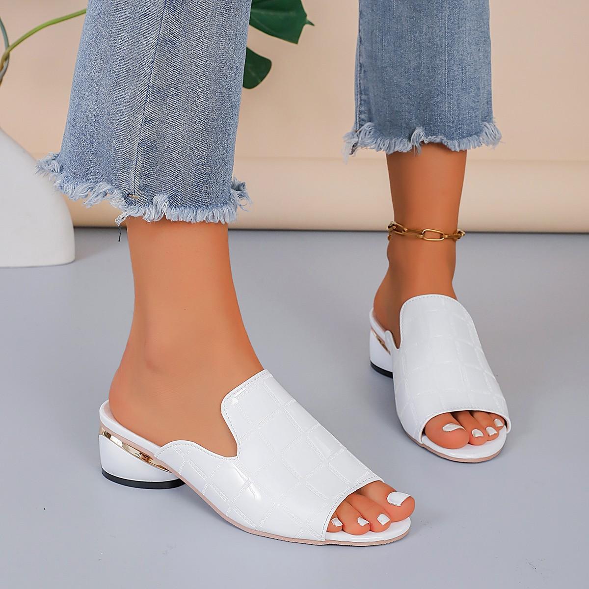 МОДНЫЕ женские летние тапочки, повседневные белые туфли на среднем каблуке, женские шлепанцы с открытым носком, обувь большого размера 35-43 37 белый