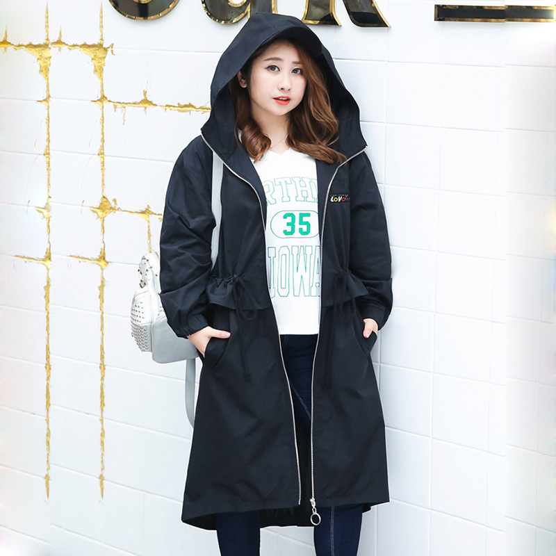 Women Trench Coats Plus Over Size 2020 New Spring Winter Lady Casual Outerwear With Hood Euro 48 50 Female Long Coats 4XL 5XL, Black