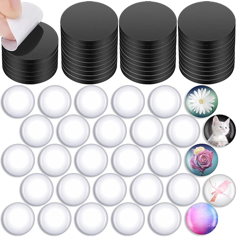 Магниты на холодильник для рукоделия, наборы круглых магнитных дисков с прозрачными купольными кабошонами, стеклянные магнитные диски (48 наборов), простые в использовании