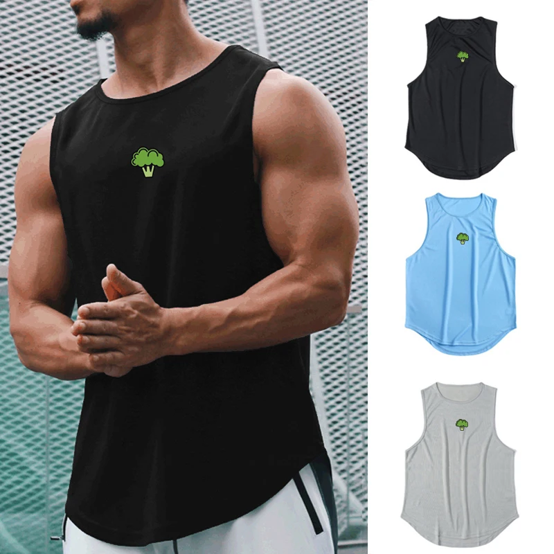 Майка мужская сетчатая для бодибилдинга, быстросохнущая Спортивная майка с элементами брокколи, рубашка без рукавов, топ для фитнеса
