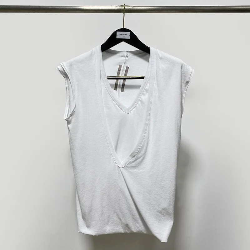 Майка мужская с V-образным вырезом, однотонная тенниска, повседневная майка, уличная одежда, 2022ss R0