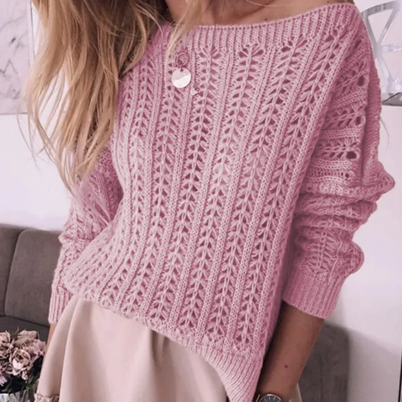Sexy Off Shoulder Harajuku Knitted Sweaters Women Hollow Out Casual Pullover Sweater Solid Long Sleeve Autumn Winter Tops Jumper