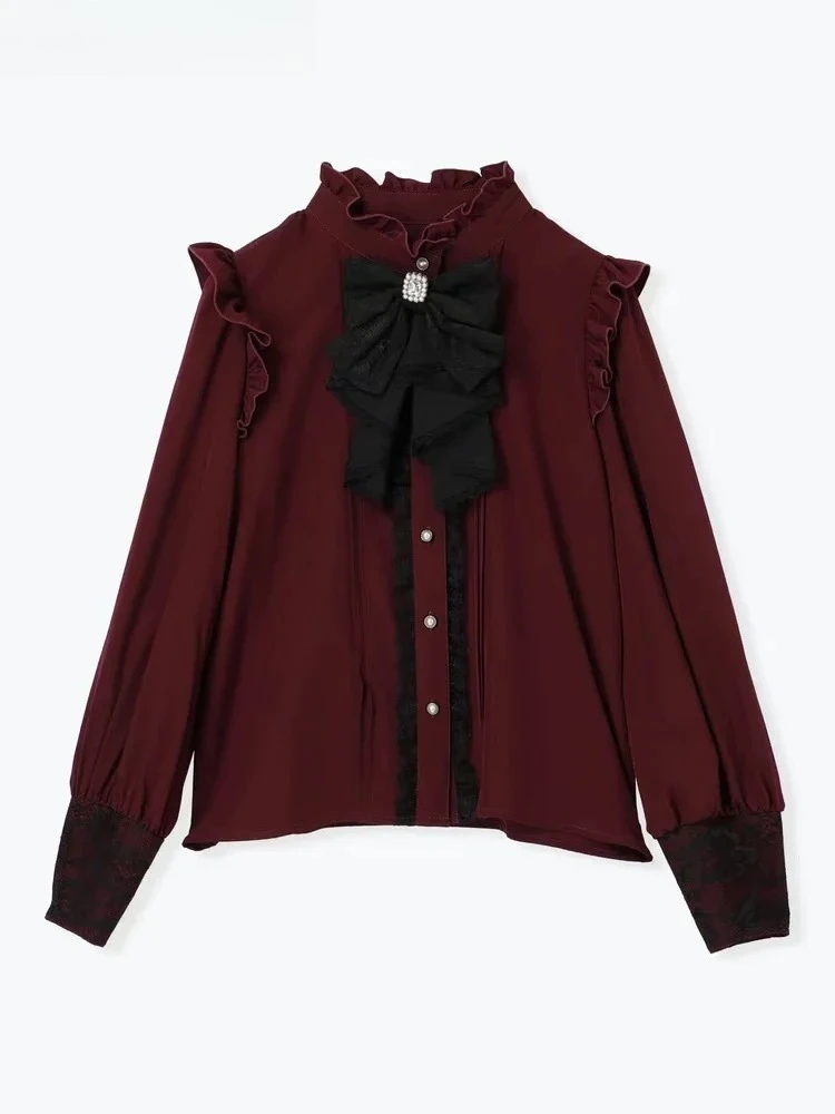2025 New Product Women's Tops Sweet and Cute Detachable Bow Long-sleeved Shirt Fashion Spring Autumn Lady Casual Blouse