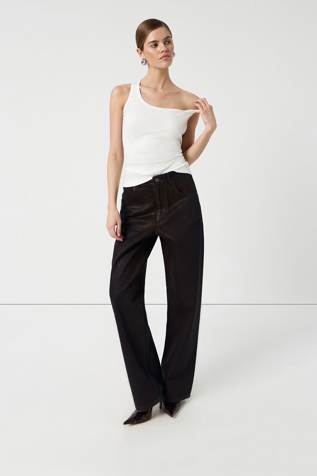 Майка с люрексной нитью из вискозы с добавлением эластана. Универсальная модель, которую можно носить и на вечеринки, и после праздников. Красивый сияющий трикотаж из вискозы с гладкой и комфортной внутренней стороной. Сочетайте с брюками джинсами и юбками нашей новой коллекции.