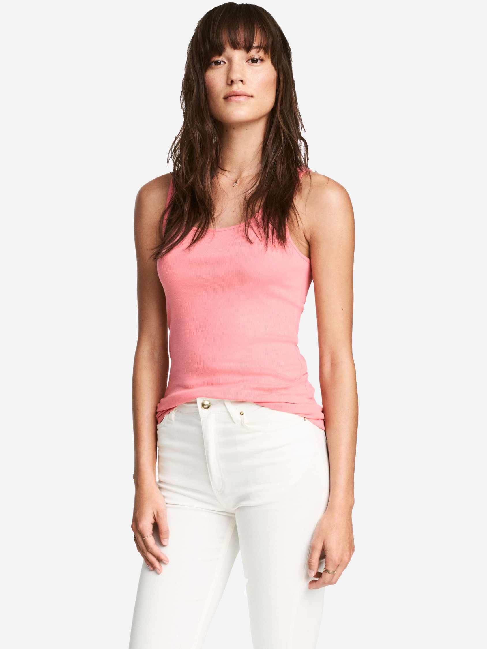 Облегающая майка из рельефного трикотажа. Длина изделия по спинке на размер L: 63 см.Hennes & Mauritz (H&M) — известный шведский бренд, который производит одежду, обувь, нижнее белье, косметику, аксессуары в невысоком ценовом сегменте. Над коллекциями бренда H&M работают креативные дизайнеры, а в производстве используются современные технологии. Сегодня H&M — это самая крупная сеть в Европе. Ее покупатели – это молодые люди, которые хотят недорого и стильно одеваться, выглядеть на все 100% и с каждой новой коллекцией менять свой образ.