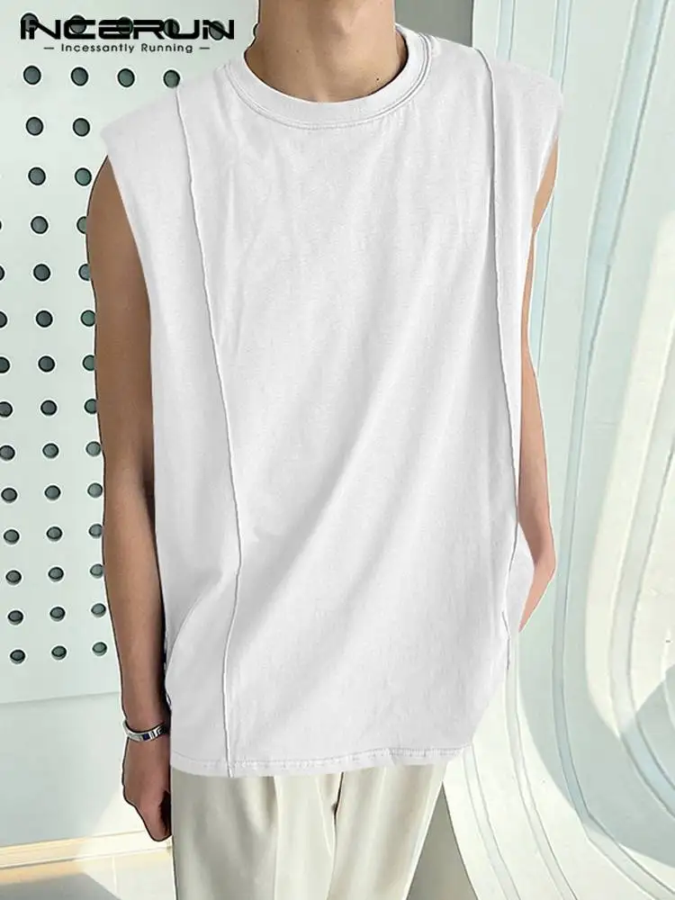 Майка INCERUN мужская с круглым вырезом, однотонная Повседневная безрукавка, стильная уличная одежда для отдыха, лето 2022