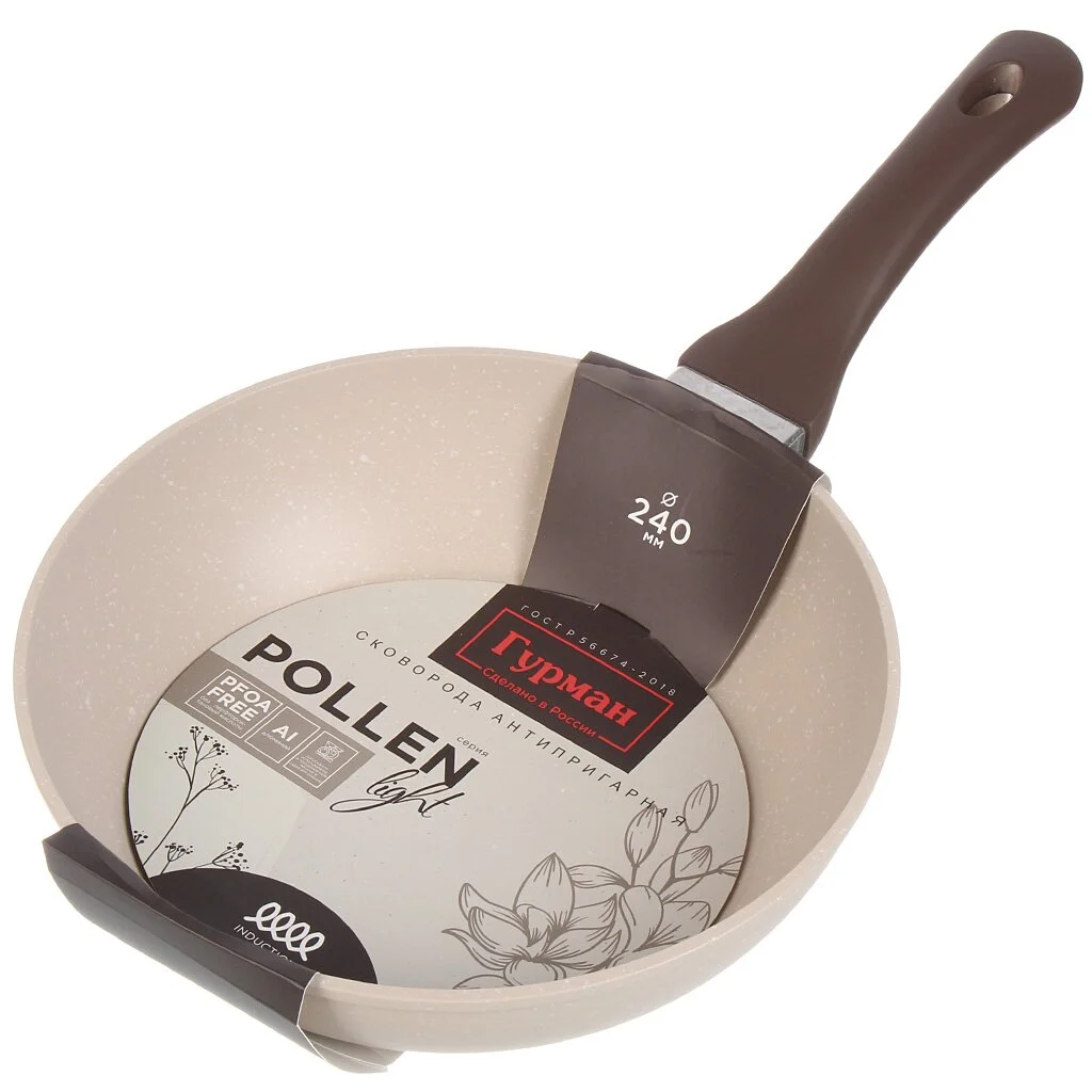 Сковорода алюминий Гурман Pollen light ГМ2401ПЛИ 24 см антипригарное покрытие индукция, Бежевый, Pollen light