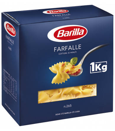 Farfalle (в переводе с итальянского: бабочки), пожалуй, самый веселый и фантазийный формат пасты, который сам по себе станет украшением блюда. А благодаря своей причудливой форме, такая паста пользуется огромной популярностью у детей. Благодаря своей форме, фарфалле прекрасно сочетаются с легкими соусами на основе овощей. Farfalle Barilla отлично проявляют себя в различных салатах. Чтобы подчеркнуть жизнерадостный характер фарфалле, Barilla предлагает вам приготовить их с помидорами черри и мятой — простое блюдо с восхитительным вкусом и ароматом.