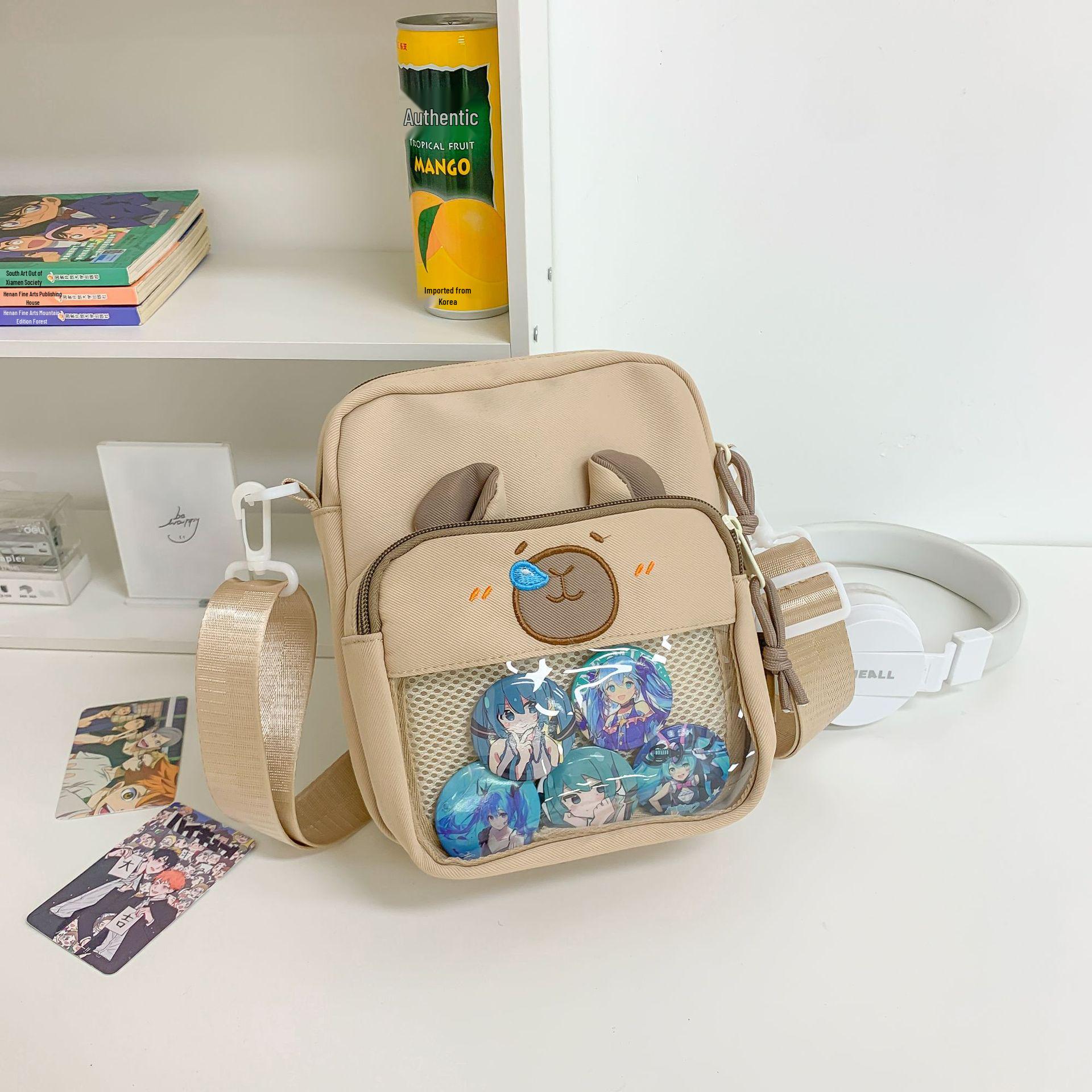 Маленькая аппетитная сумка-ита капибары – Милый японский корейский стиль с прозрачным дизайном для значков хаки