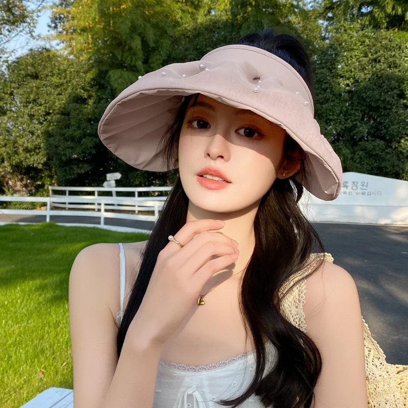 Маленькая жемчужина большие поля шляпа-ракушка с открытым верхом женская летняя дорожная защита от солнца свежая и элегантная шляпа от солнца повязка на голову шляпа от солнца M(56-58cm) розовый