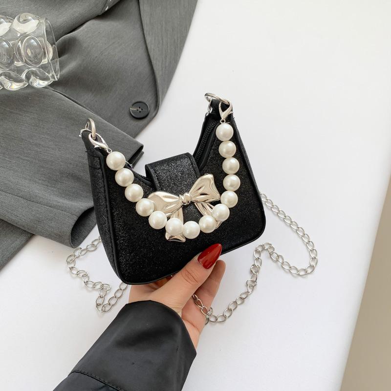 Маленькая женская сумка в иностранном стиле 2024 года, новая летняя сумка-мессенджер с цепочкой на одно плечо под мышкой, персонализированная красивая сумка-мессенджер New Moon чёрный