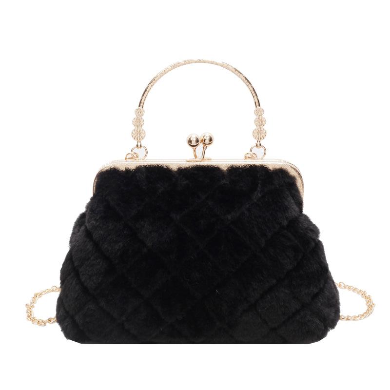 Маленькая женская сумка с ромбовидной цепочкой 2024 года, новая осенне-зимняя плюшевая сумка, универсальная сумка-корпус с зажимом, сумка-сумка для волос чёрный