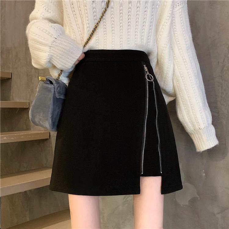 Маленькая женская черная шерстяная А-силуэта мини-юбка с высокой талией для осени/зимы 2023 L