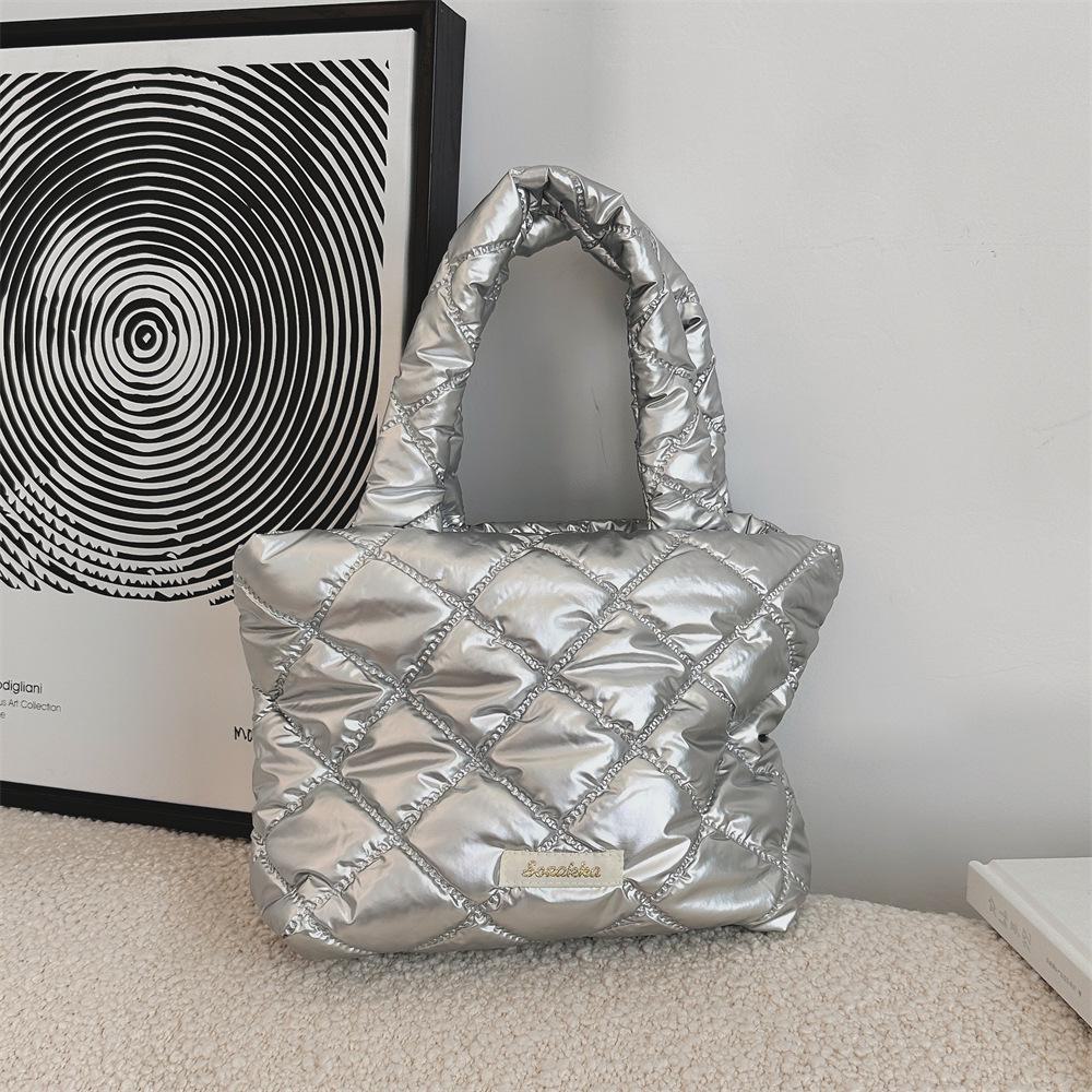 Маленькая квадратная стеганая однотонная сумочка — симпатичная и портативная для походов по магазинам или обеда small diamond серебряный