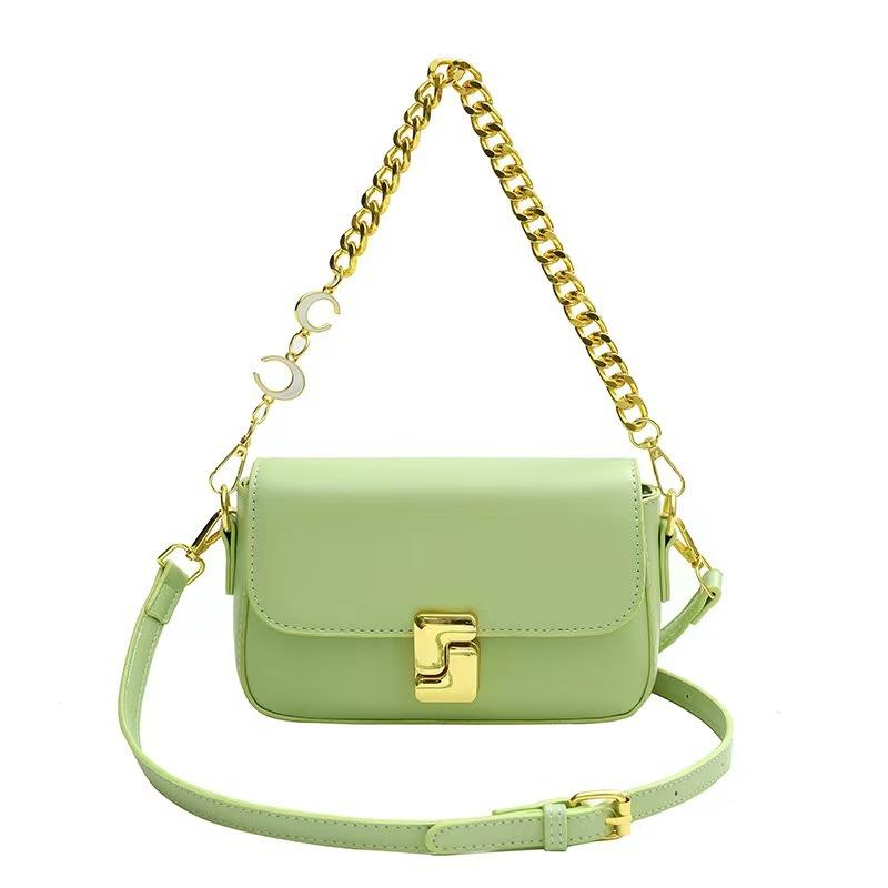 Маленькая квадратная сумка на цепочке с застежкой-молнией, сумка через плечо, однотонная, с замком, темпераментная женская сумка через плечо зелёный
