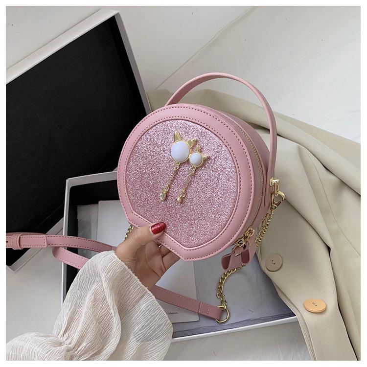 Маленькая круглая сумка на цепочке, новинка весны и лета 2020, модная универсальная красная сумка через плечо из сетки с блестками, сумка-мессенджер 18cm*7.5cm*16cm розовый